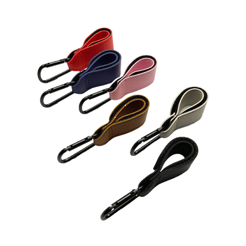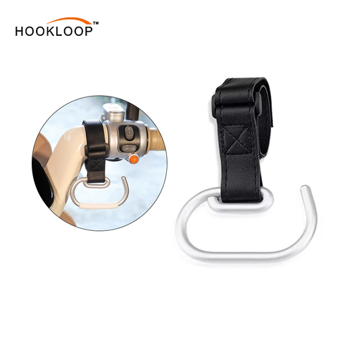 Gancho de cochecito con logotipo personalizado al por mayor, gancho de aluminio ligero y duradero, correa de hebilla de bucle